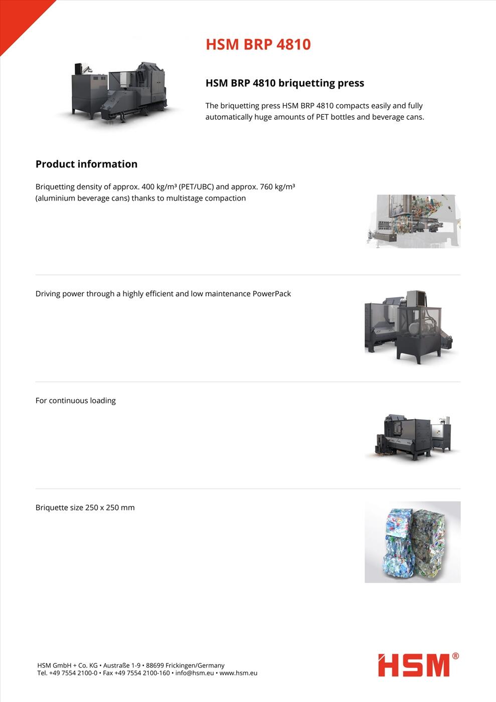- Máy đóng bành phế liệu là giải pháp giúp các Doanh nghiệp sản xuất, khu chế xuất, kho vận xử lý chất thải rắn ngay tại cơ sở, giúp tiết kiệm chi phí trong hoạt động kinh doanh. HSM BRP 4810 là thiết bị công suất tầm trung với năng lực xử lý 55 m³ / giờ với lực ép lên đến 477 kN.