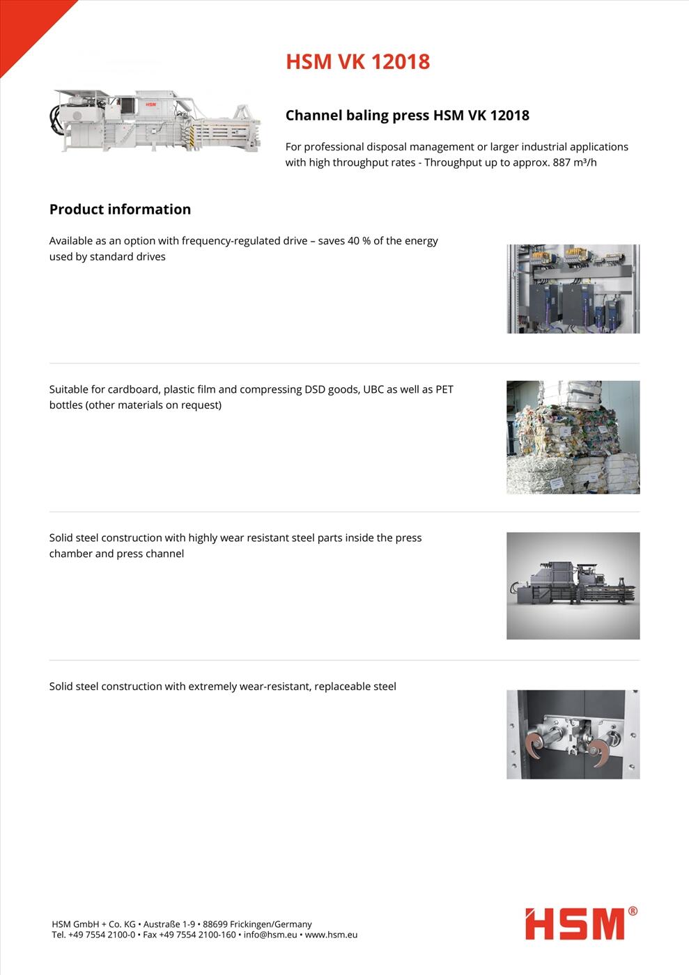 - Máy đóng bành phế liệu là giải pháp giúp các Doanh nghiệp sản xuất, khu chế xuất, kho vận xử lý chất thải rắn ngay tại cơ sở, giúp tiết kiệm chi phí trong hoạt động kinh doanh. HSM VK 12018 là thiết bị công suất tầm trung với năng lực xử lý 837 m³ / giờ với lực ép lên đến 12000 kN.