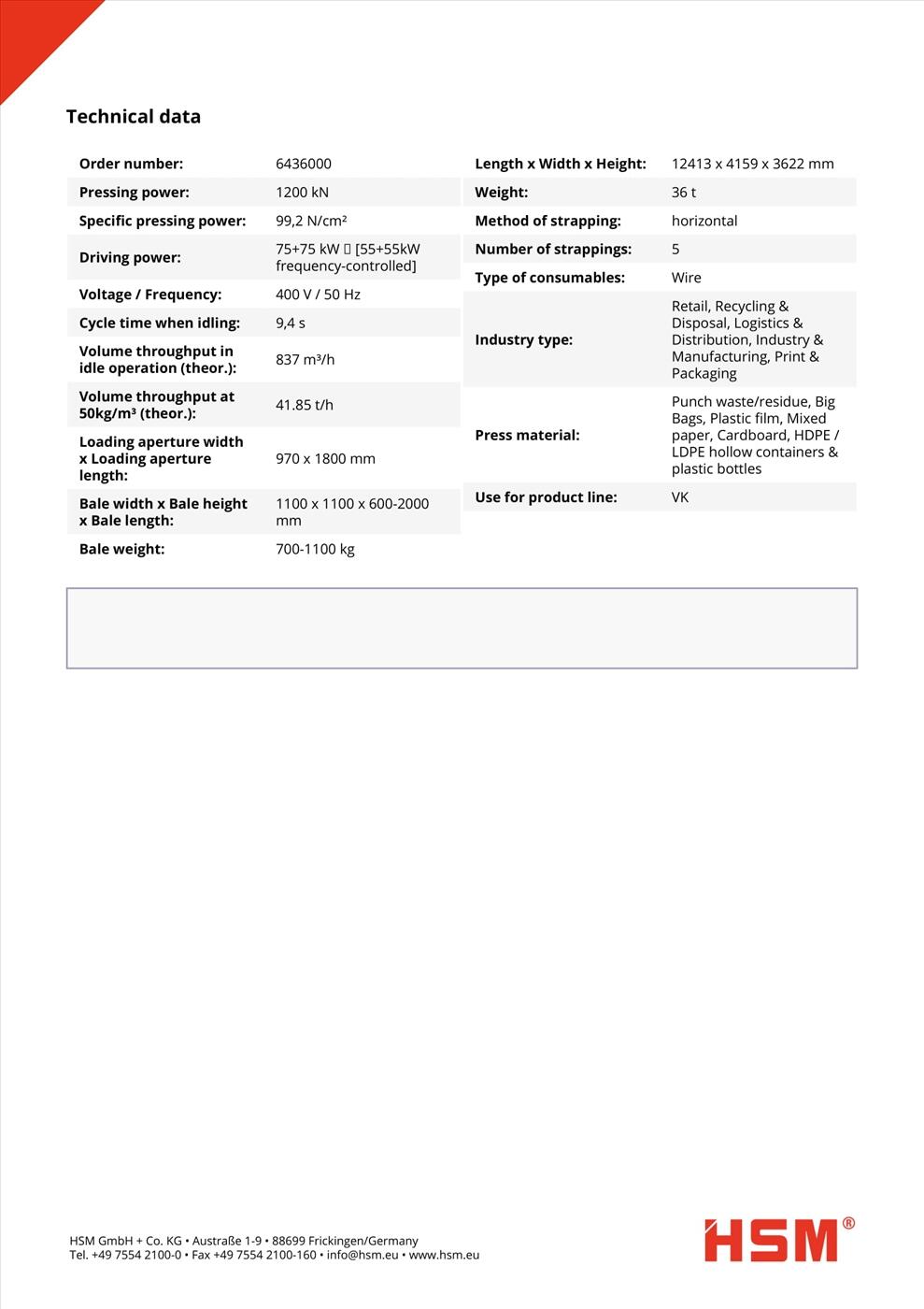 - Máy cắt đóng bành phế liệu HSM VK 12018 chuyên dùng cho các Công ty sản xuất, Giao hàng, Logicstic,...