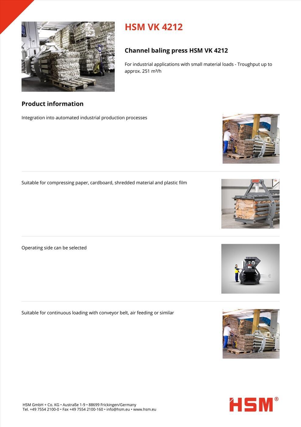 - Máy cắt đóng bành phế liệu HSM VK 4212 chuyên dùng cho các Công ty sản xuất, Giao hàng, Logicstic,...