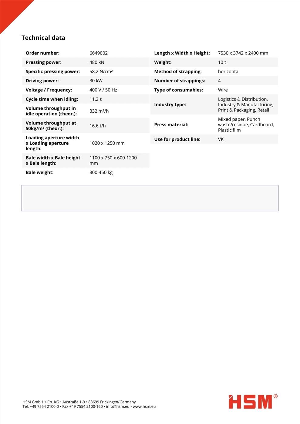- Máy cắt đóng bành phế liệu HSM VK 4812 chuyên dùng cho các Công ty sản xuất, Giao hàng, Logicstic,...