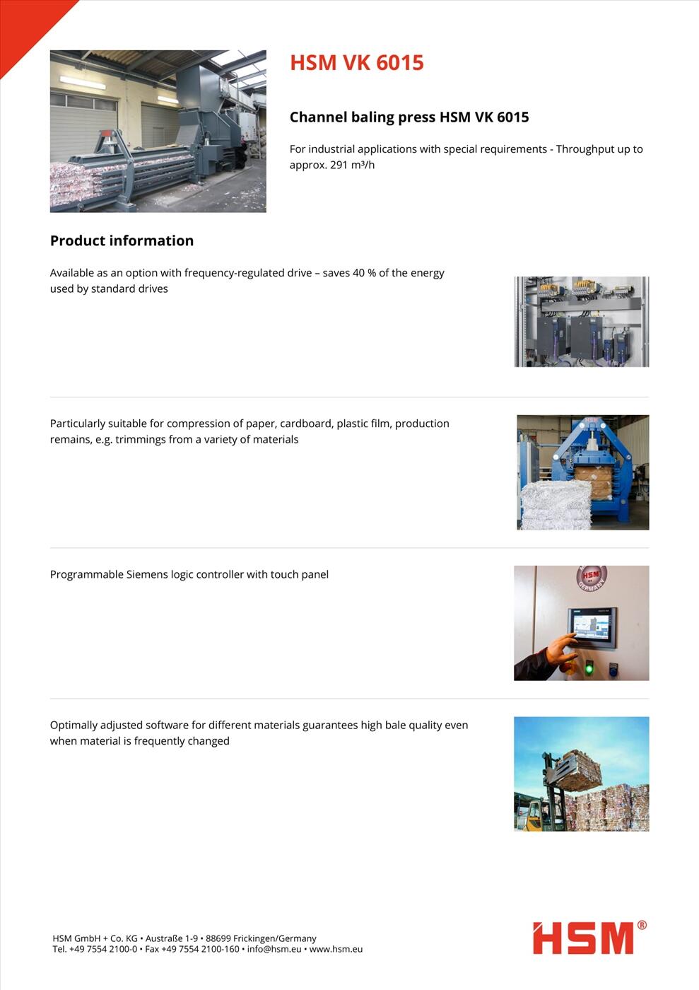 - Máy cắt đóng bành phế liệu HSM VK 6015 chuyên dùng cho các Công ty sản xuất, Giao hàng, Logicstic,...