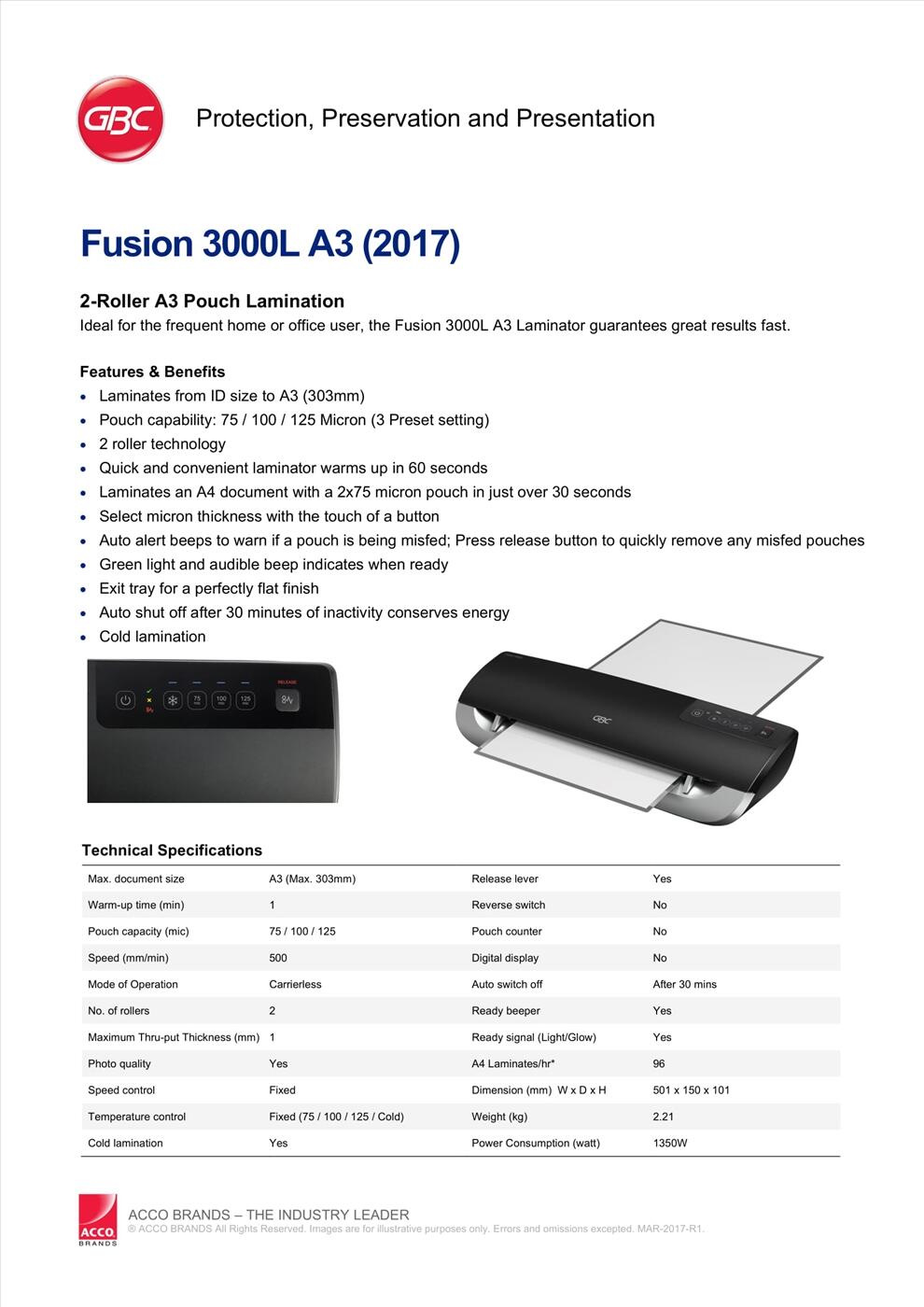 - Máy ép Plastic GBC FUSION 3000L A3 là một sản phẩm cao cấp xuất xứ từ Mỹ và được lắp ráp tại Trung quốc. Bảo hành chính hãng 12 tháng.