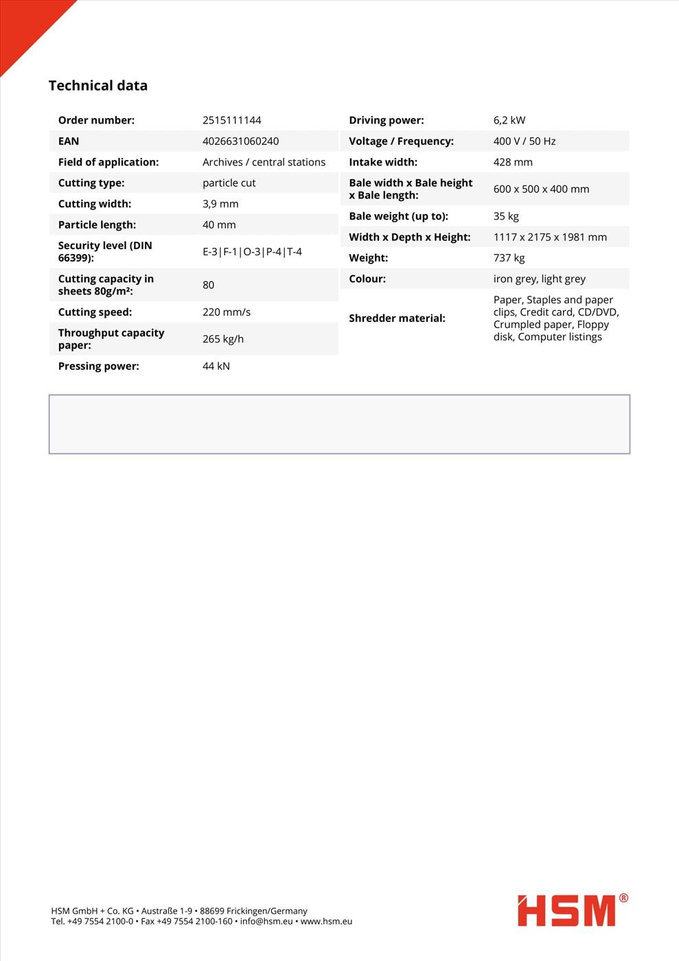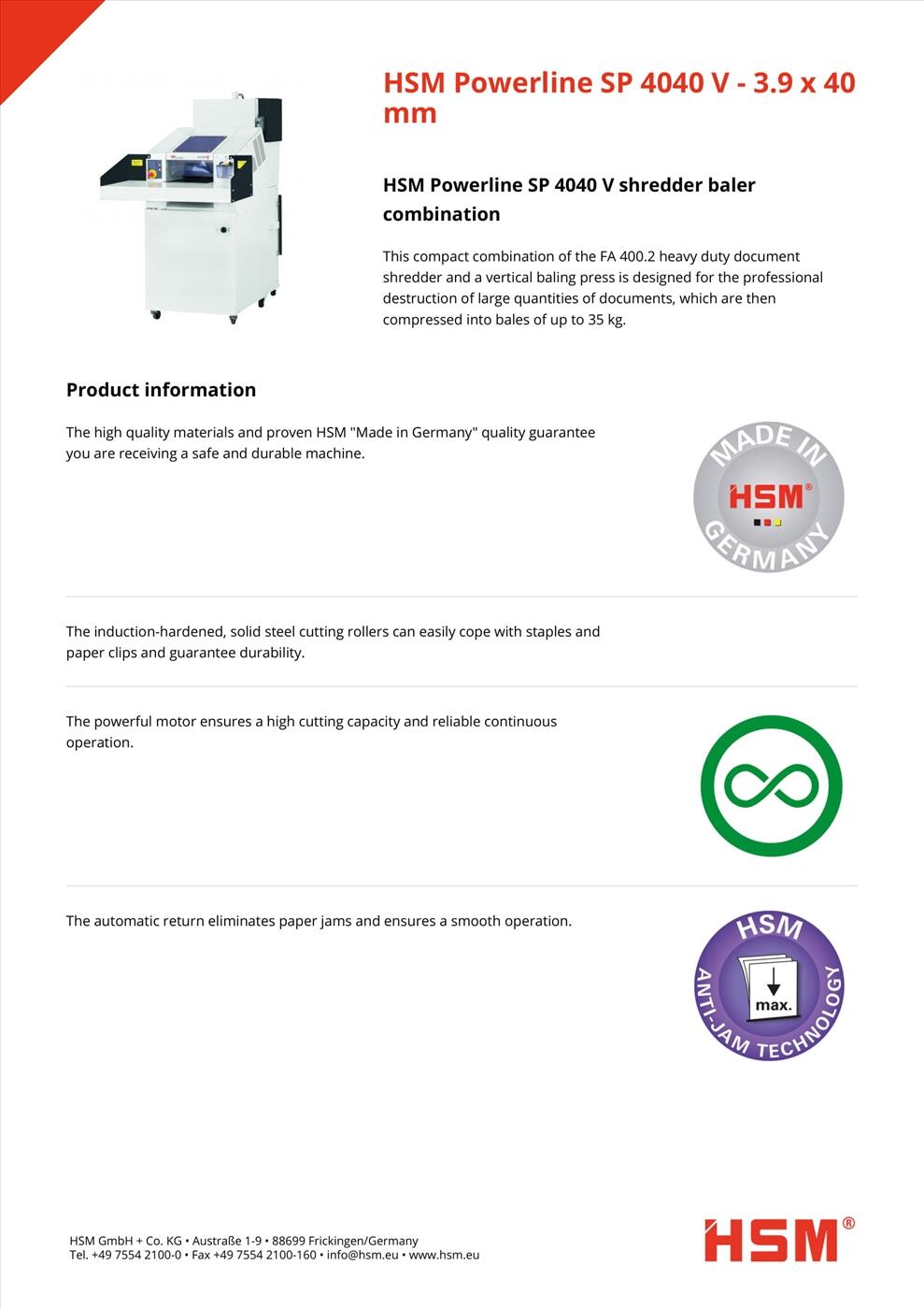 Máy hủy công nghiệp HSM Powerline SP 4040V - 3.9 x 40mm