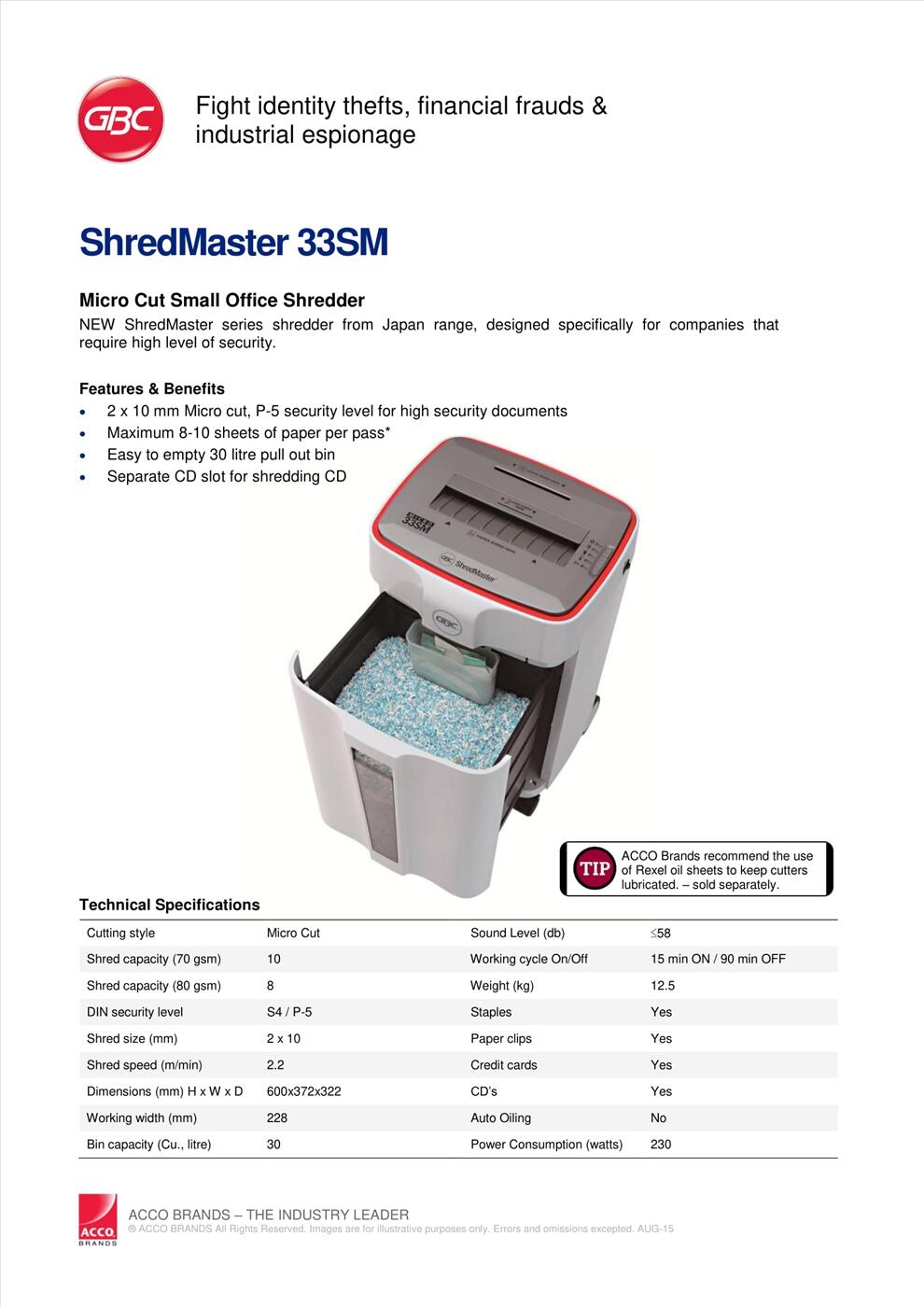 Máy hủy giấy GBC ShredMaster 33SM luôn nằm trong lựa chọn hàng đầu cho nhóm máy hủy giấy tốt nhất hiện nay. Máy hủy giấy GBC là thương hiệu của Đức tốt nhất