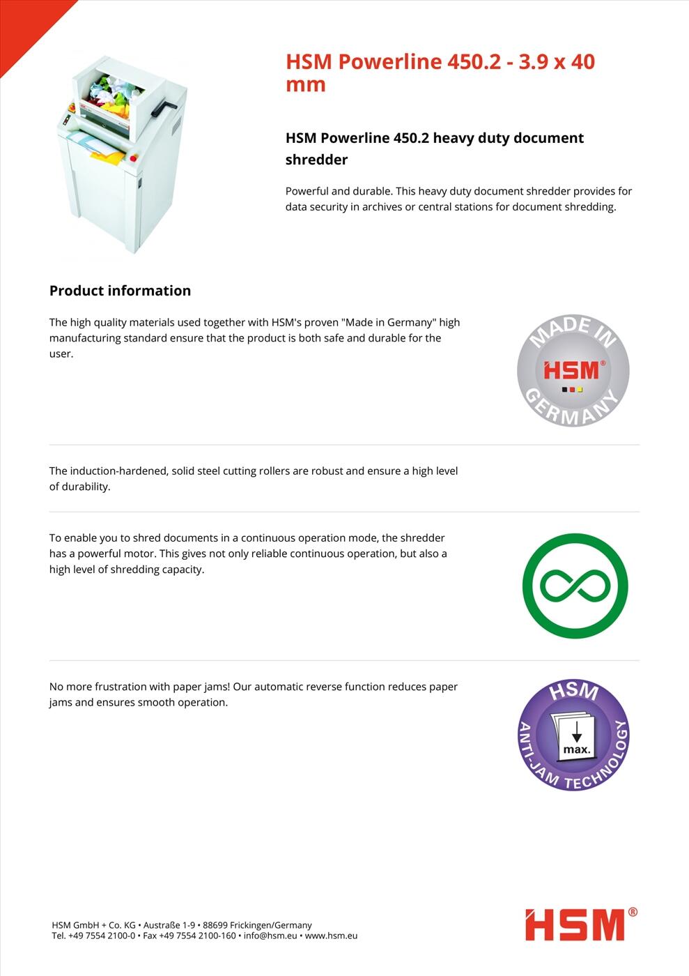 Máy hủy giấy HSM POWERLINE 450.2 (3,9x40mm)