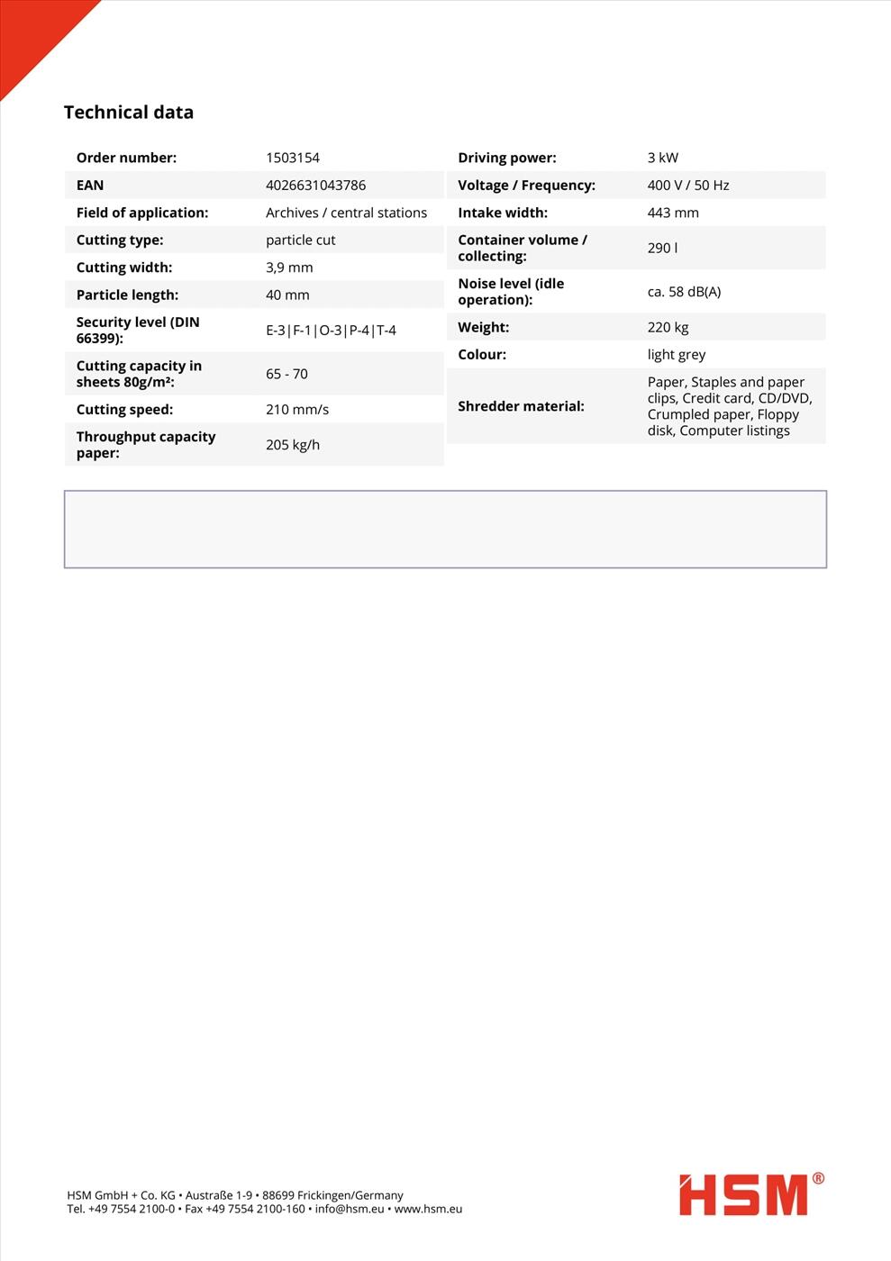 Máy hủy giấy công nghiệp HSM POWERLINE 450.2 (3,9x40mm)
