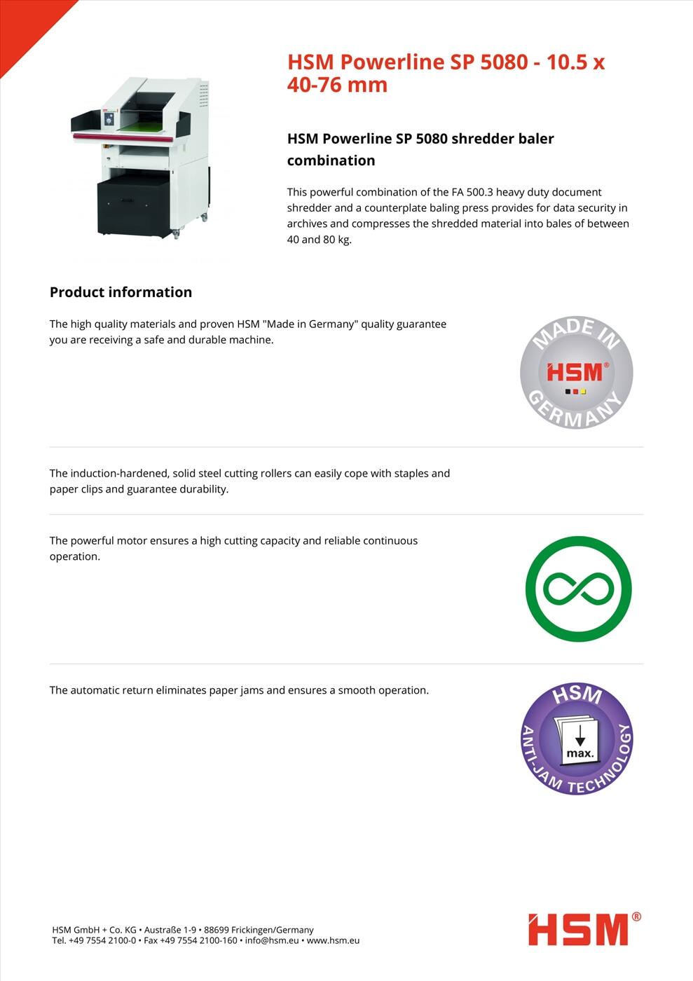 Direct importer and exclusive distributor of HSM Paper Shredders Powerline SP 5080 in Vietnam Hotline - 0918 976 522