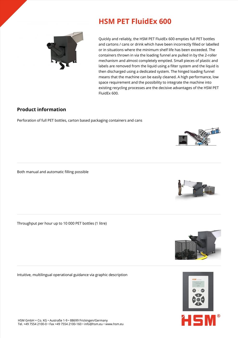 Máy nghiền chay lọ và ép kiện HSM PET FluidEx 600